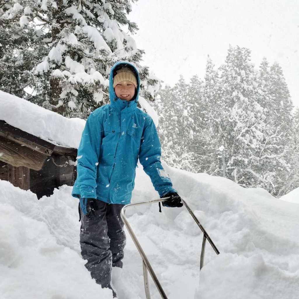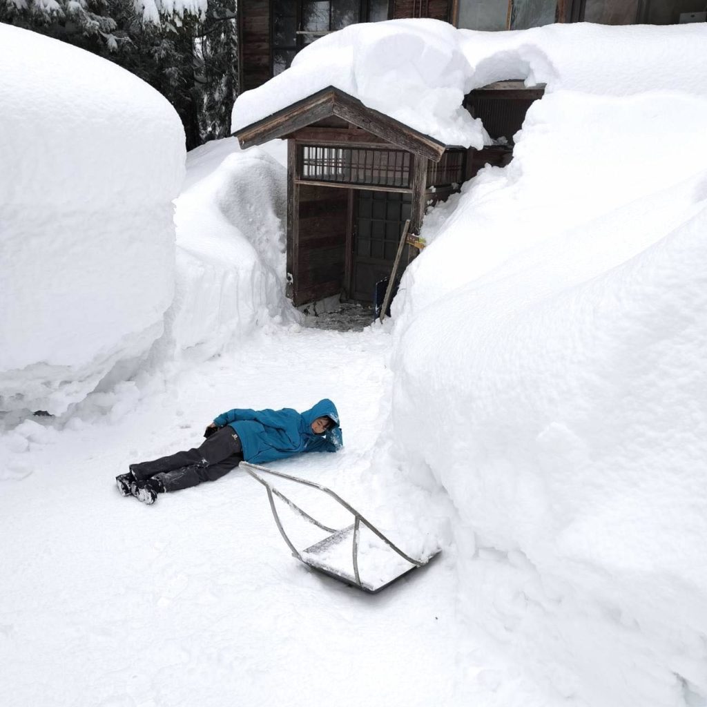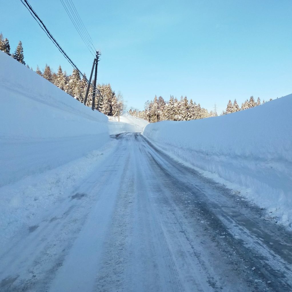 「3メートルの雪と戦っています。でも、やがて春が来るから、がんばって怪我をしないように雪かたづけをします。がんばって」